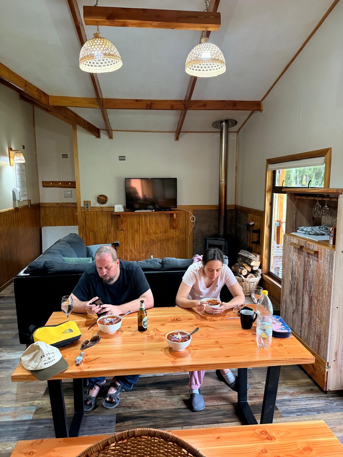 Místo toho jsme zamířili rovnou na ubytování a cestu jsme pojali spíš pomaleji. I tak ale stála za to. Cestou jsme se kochali výhledy na hory, otevřené louky, řeky a okolní krajinu, která dávala jasné najevo, že jsme se přesunuli do úplně jiné části světa. Nebyl to den plný programu, ale spíš klidný přesun a pěkné seznámení s Patagonií.