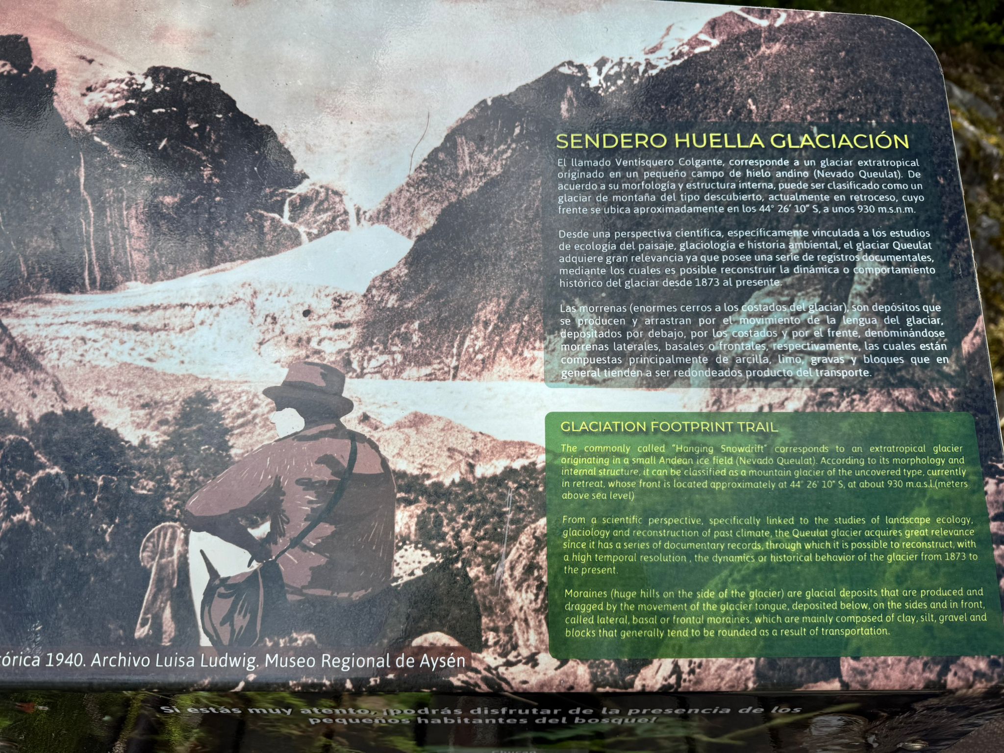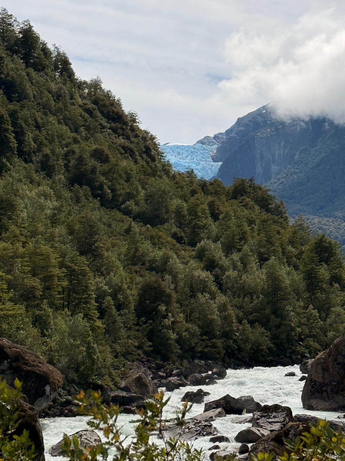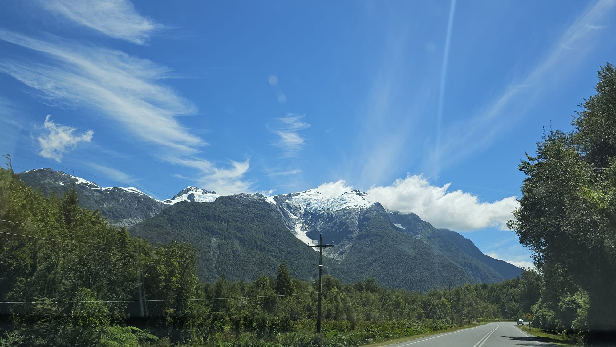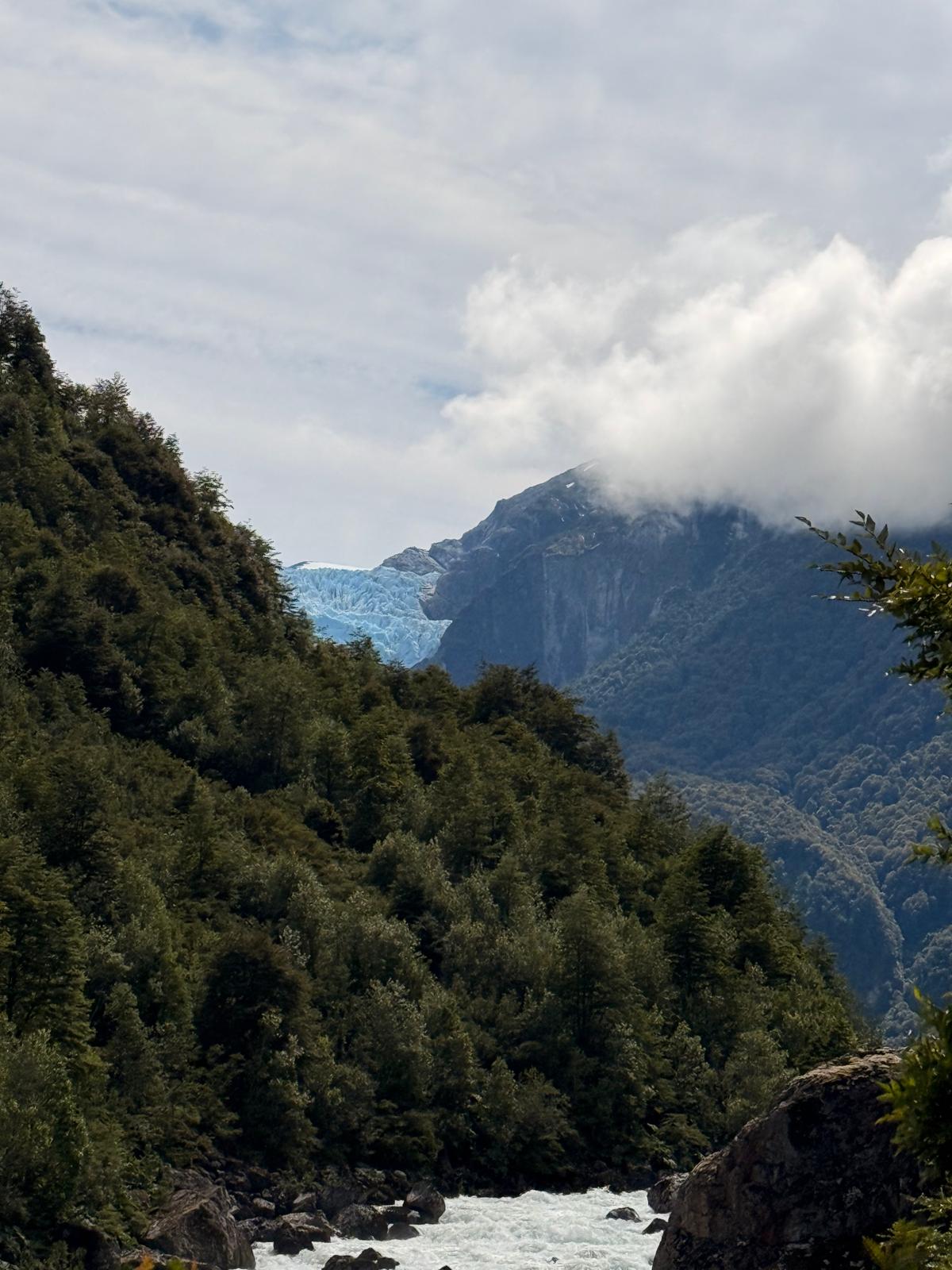 Po cestě jsme se zastavili u ledovce v národním parku Queulat. Původně jsme měli v plánu vydat se na pěší túru, která by nás dovedla blíž k ledovci, ale stezka byla bohužel uzavřená kvůli rekonstrukci. Nezbylo než si místo alespoň vyfotit z dostupných vyhlídek a pokračovat dál v cestě.