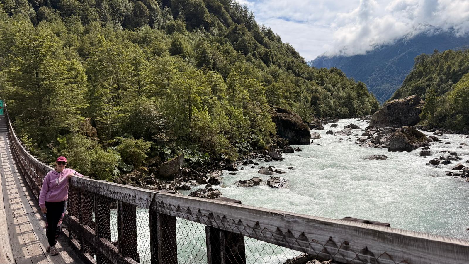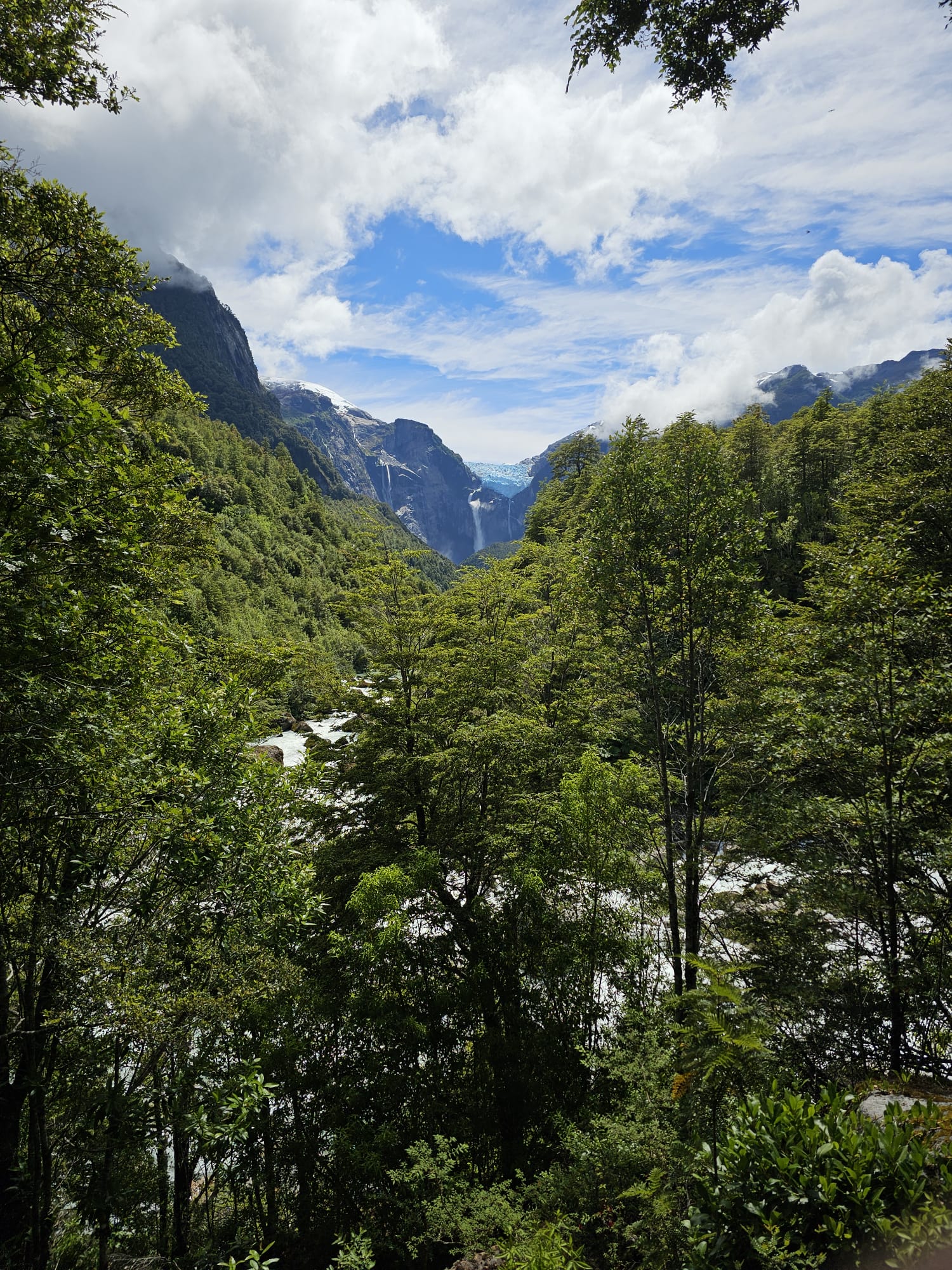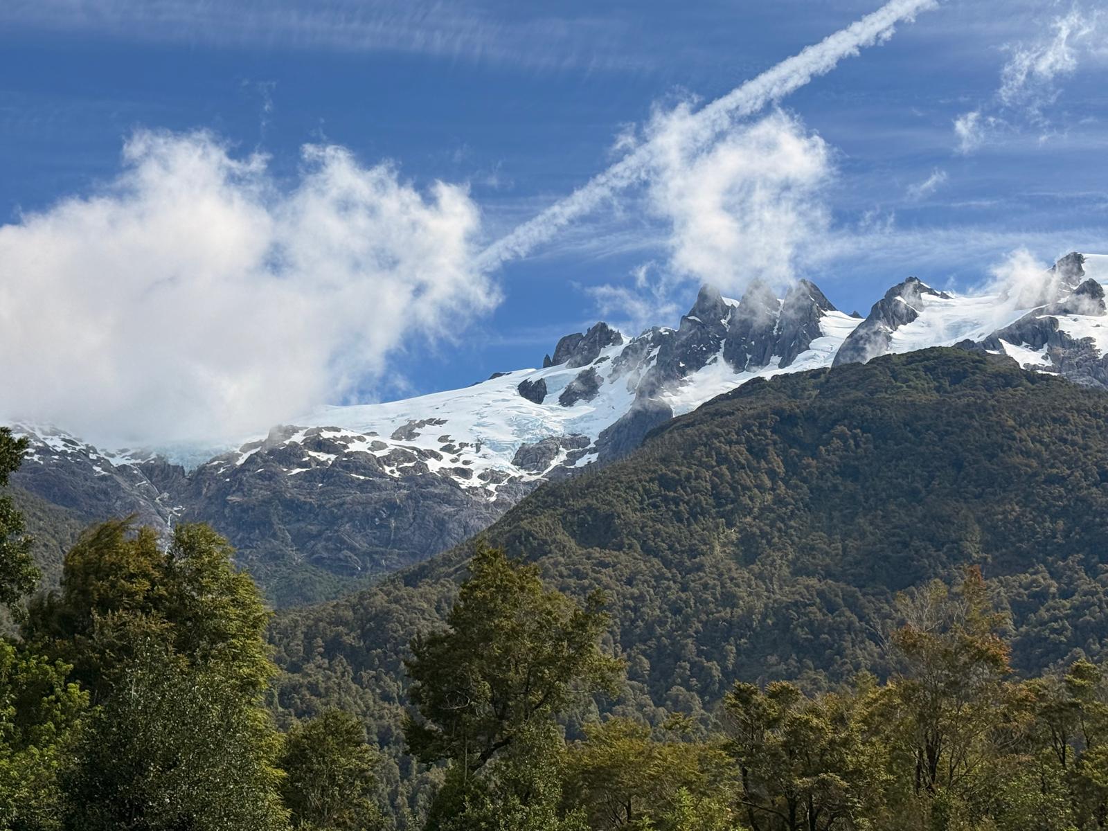 Po cestě jsme se zastavili u ledovce v národním parku Queulat. Původně jsme měli v plánu vydat se na pěší túru, která by nás dovedla blíž k ledovci, ale stezka byla bohužel uzavřená kvůli rekonstrukci. Nezbylo než si místo alespoň vyfotit z dostupných vyhlídek a pokračovat dál v cestě.