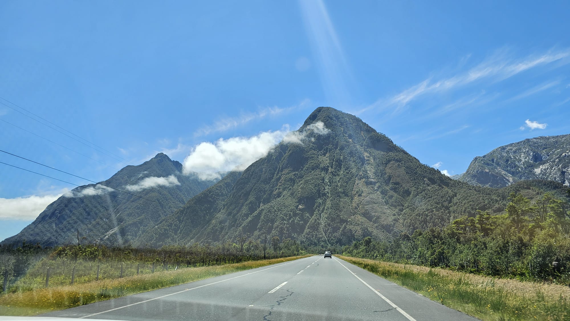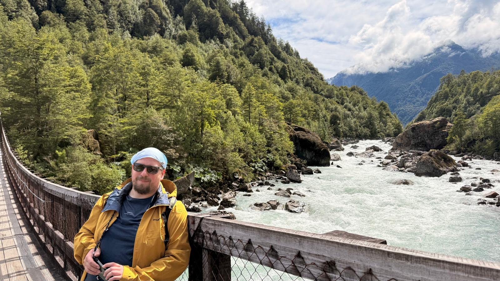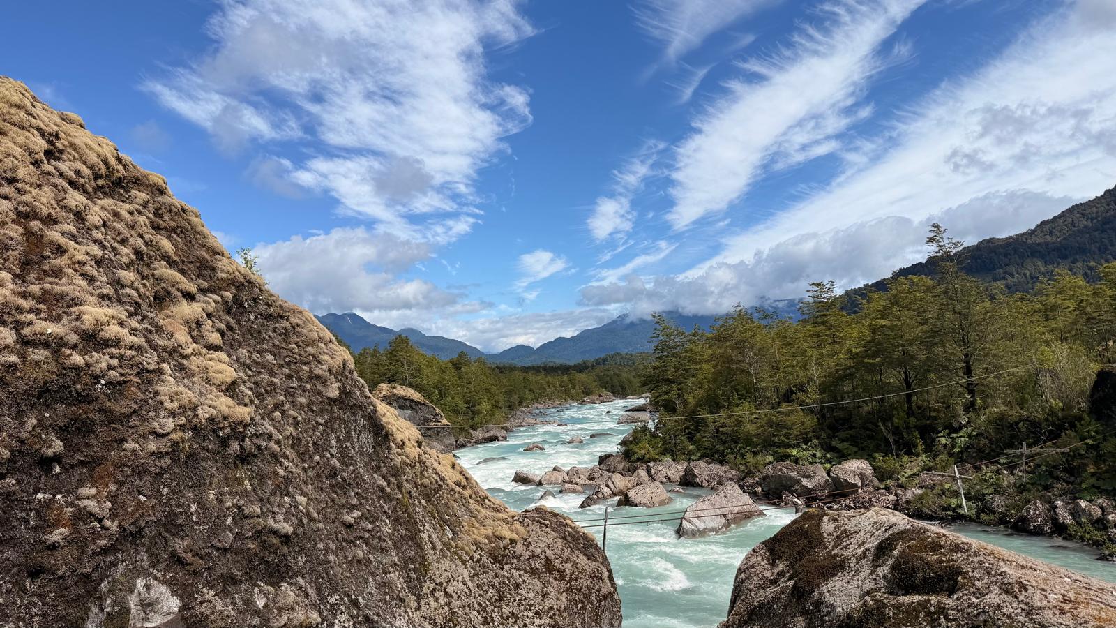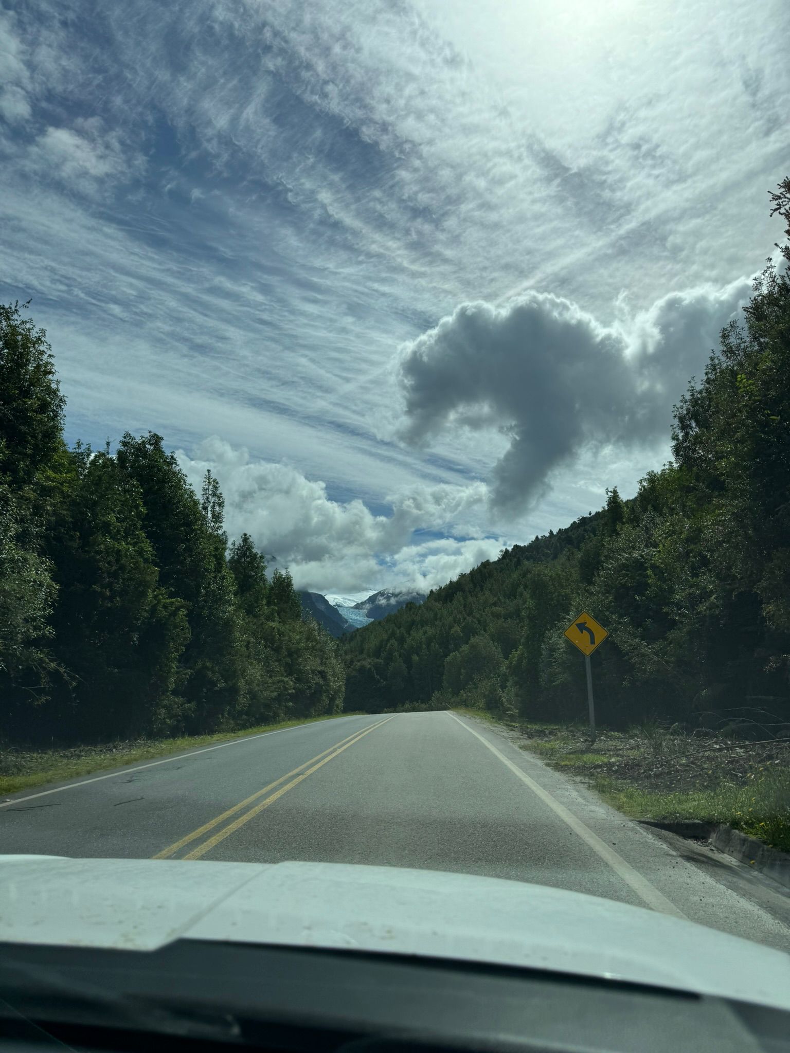 Po cestě jsme se zastavili u ledovce v národním parku Queulat. Původně jsme měli v plánu vydat se na pěší túru, která by nás dovedla blíž k ledovci, ale stezka byla bohužel uzavřená kvůli rekonstrukci. Nezbylo než si místo alespoň vyfotit z dostupných vyhlídek a pokračovat dál v cestě.
