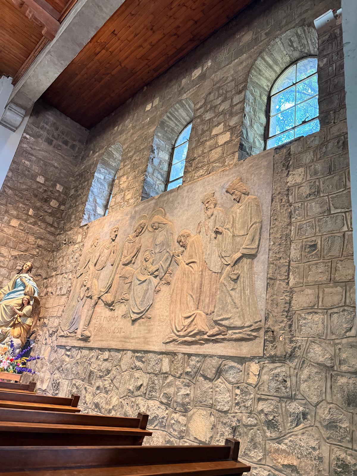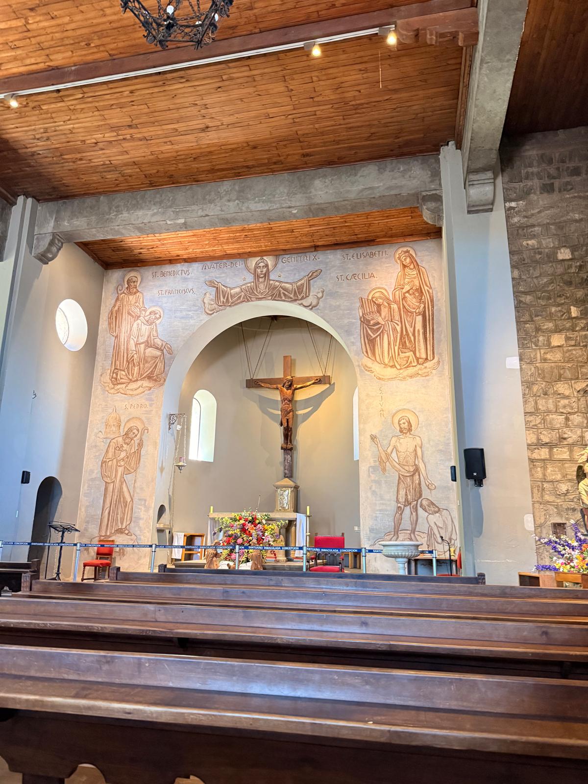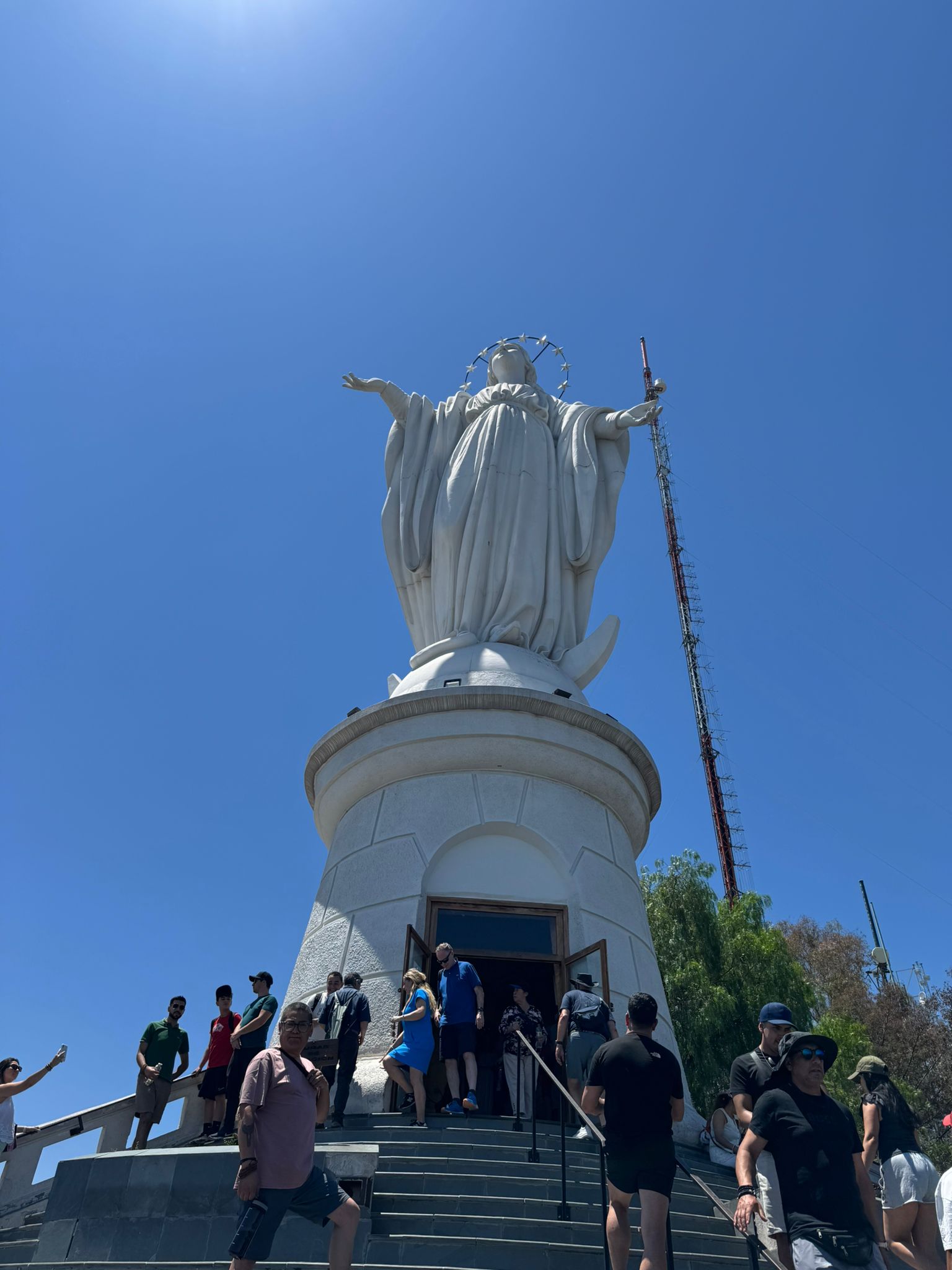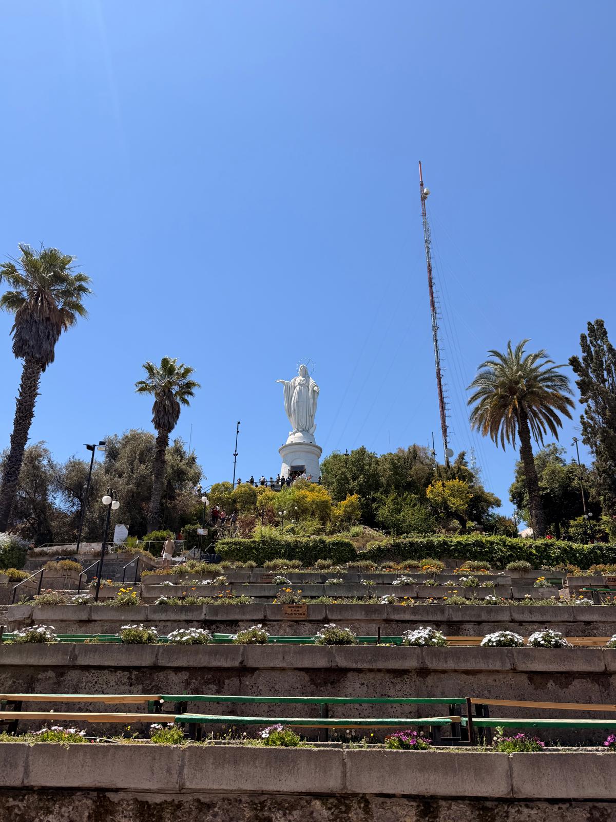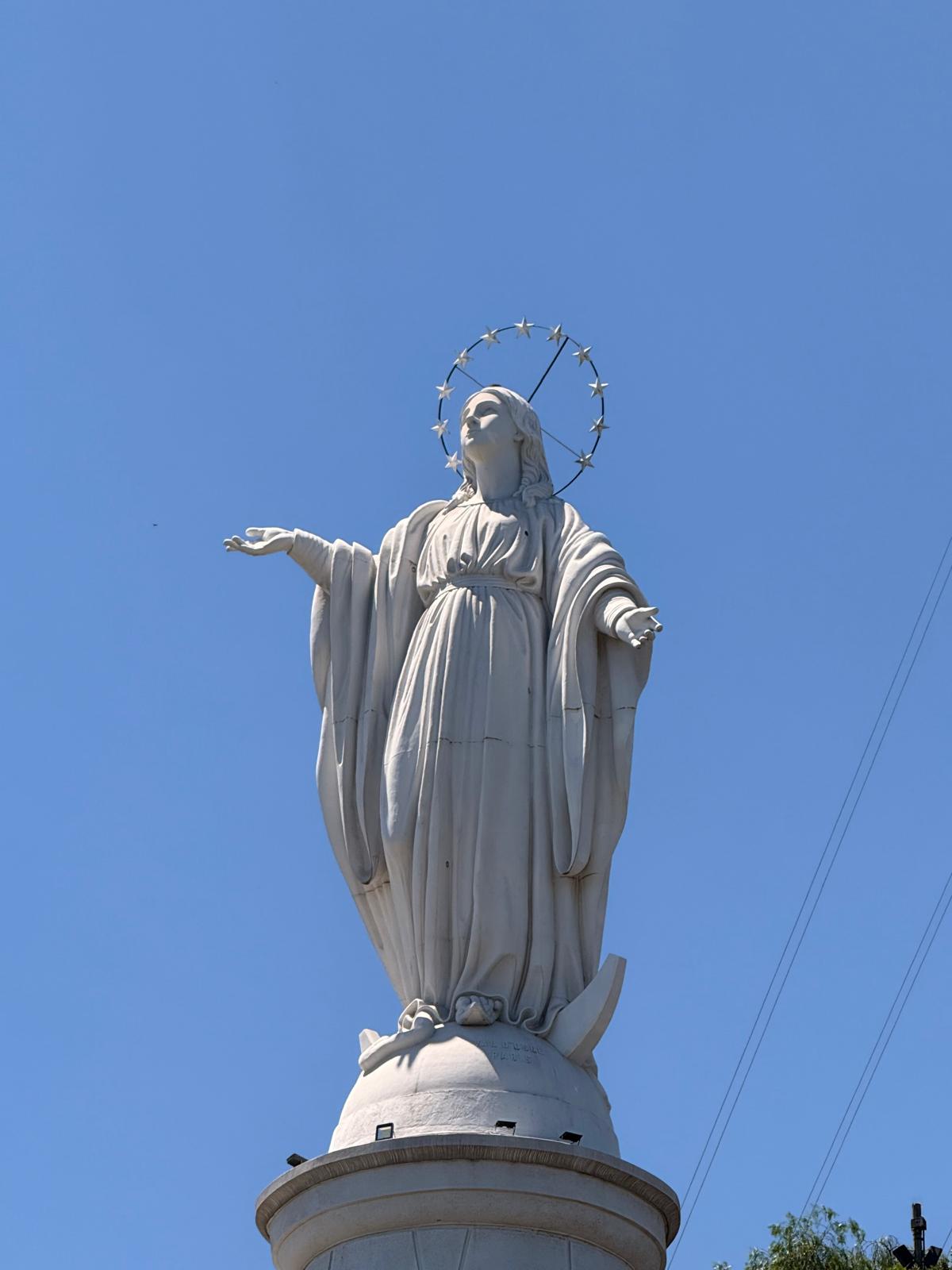 Na vrcholu kopce se nachází svatyně Neposkvrněného početí Panny Marie a ikonická socha Panny Marie, která je jedním z nejvýraznějších symbolů Santiaga. Socha byla vztyčena v roce 1908 a měří přibližně čtrnáct metrů, stojí na vysokém podstavci a je viditelná z velké části města. Kostel i socha zde byly vybudovány jako symbol ochrany města a dodnes jsou významným poutním i vyhlídkovým místem. Celý areál působí klidně a je v ostrém kontrastu s ruchem města dole pod kopcem.