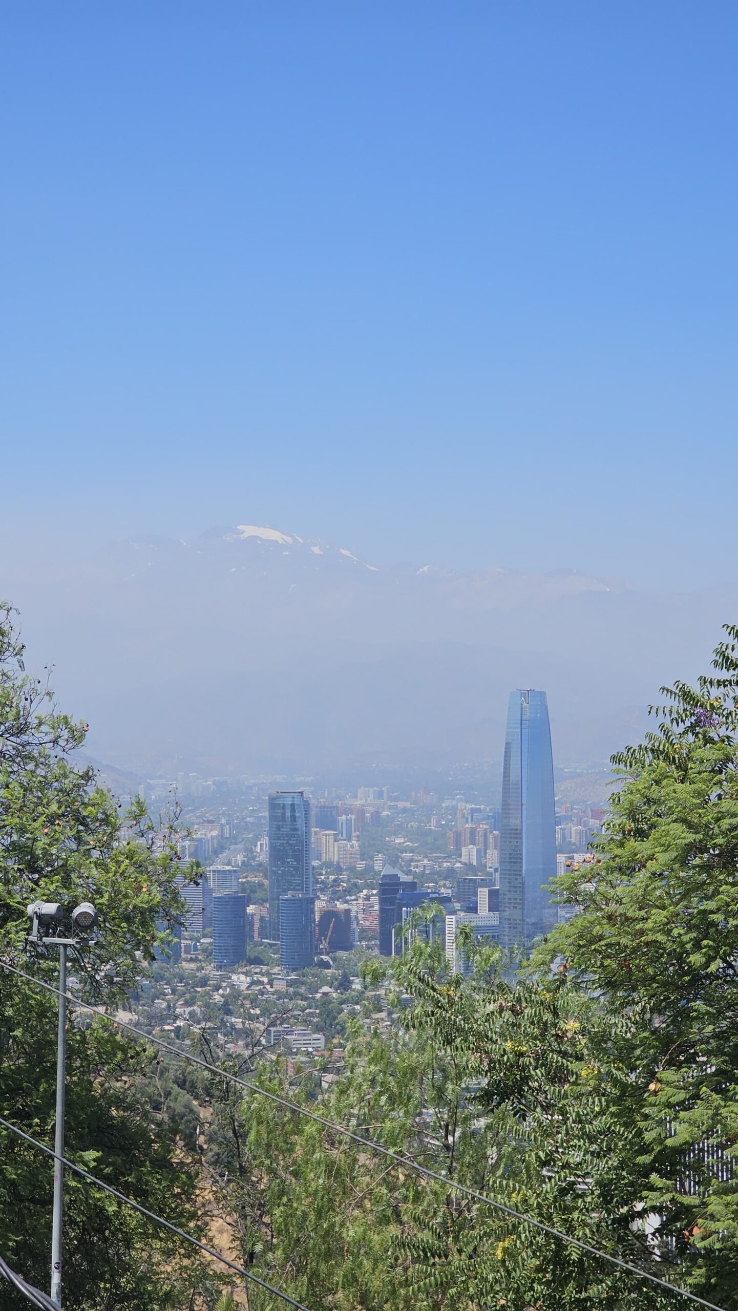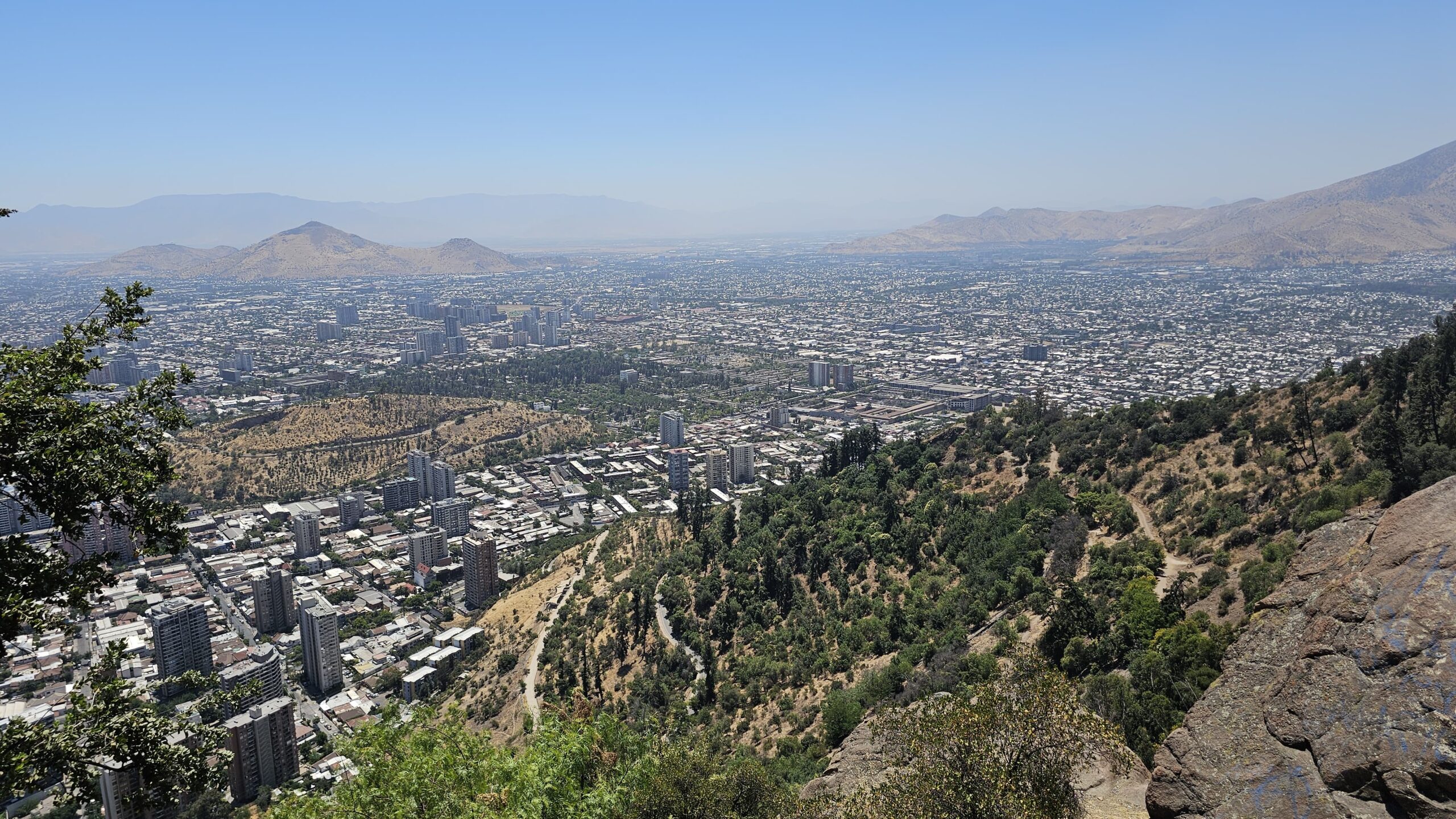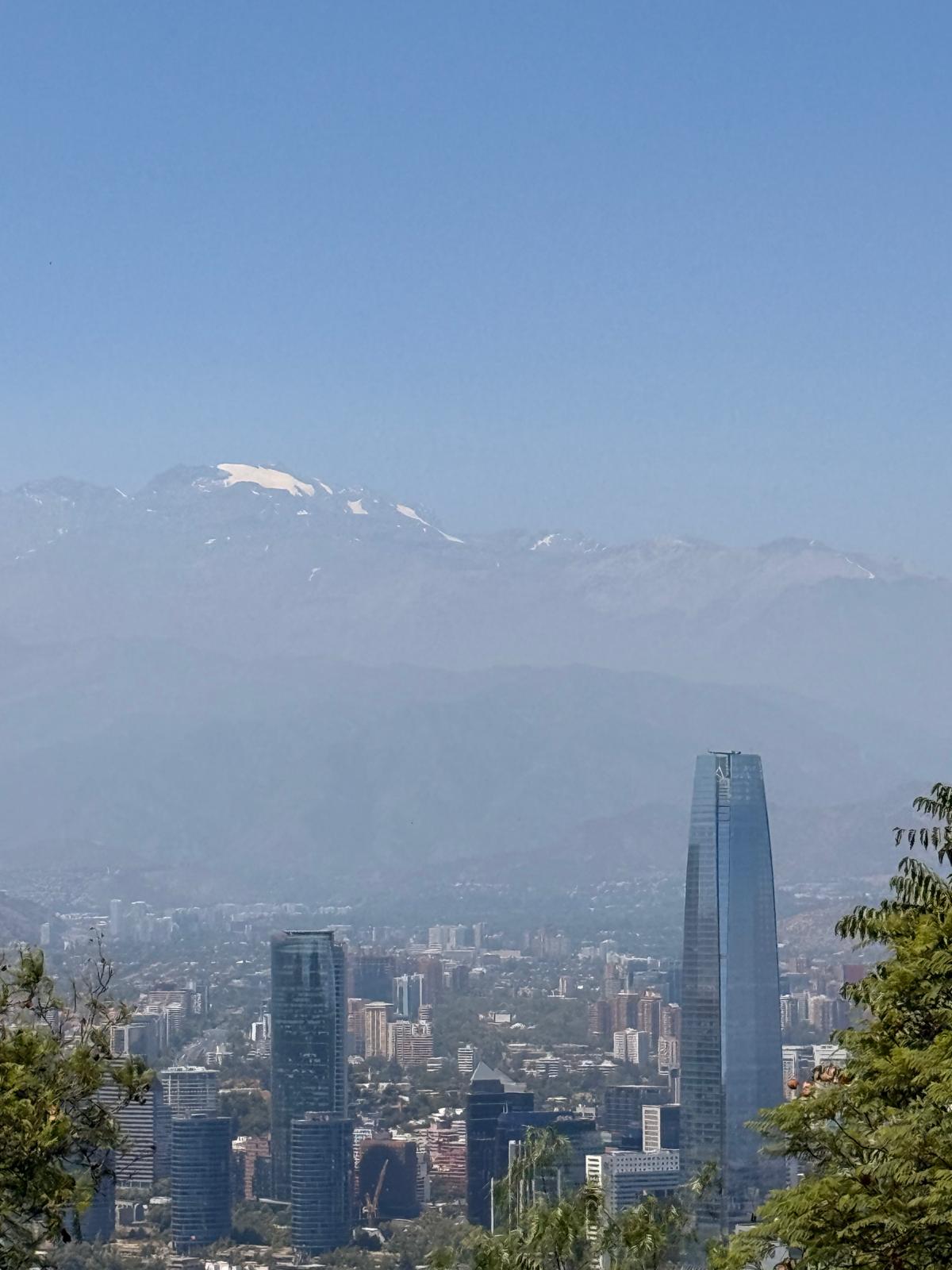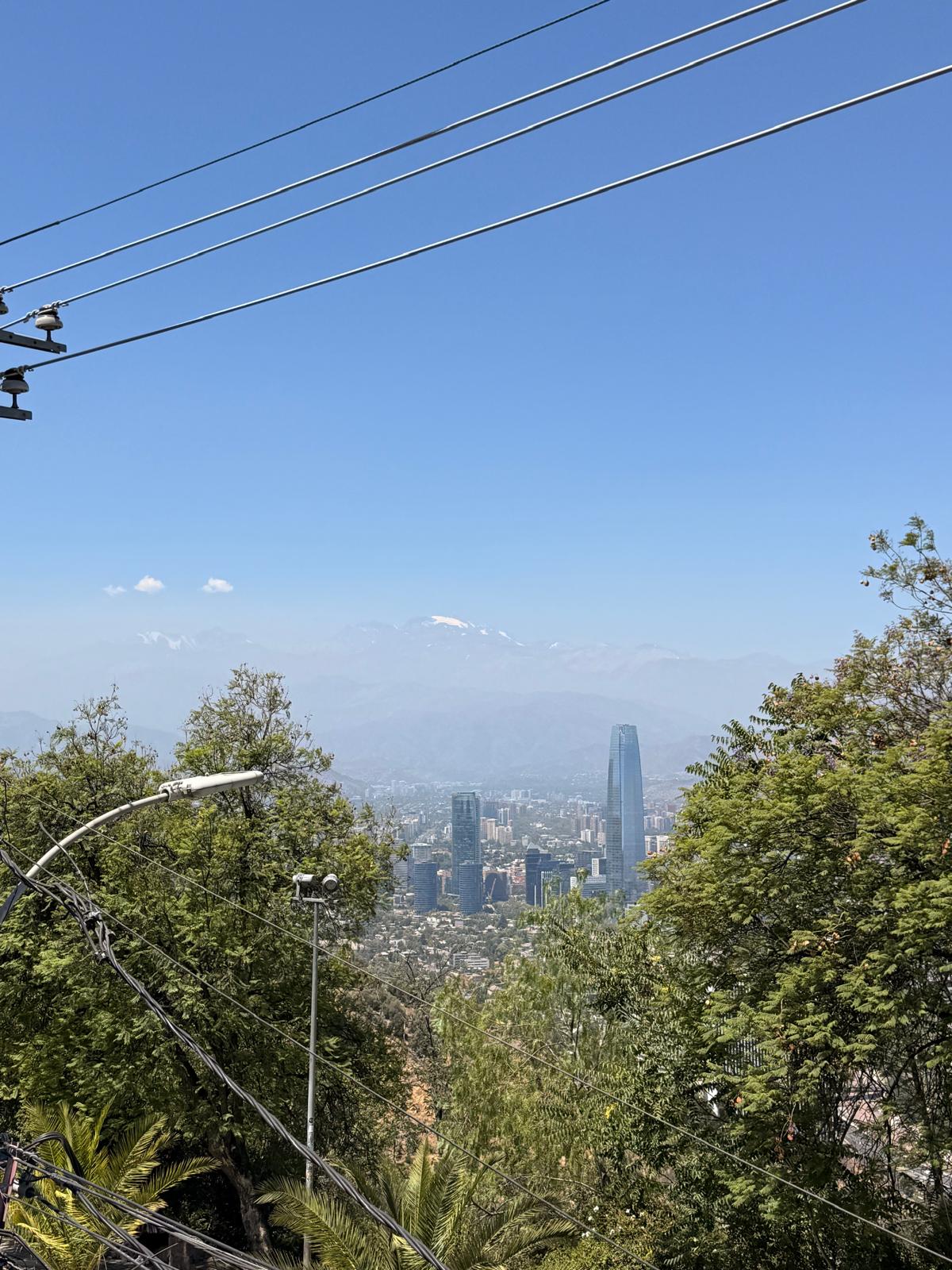 Lanovka nás vyvezla na Cerro San Cristóbal, odkud jsou krásné výhledy na celé město. Teprve shora je opravdu vidět, jak je Santiago obrovské a rozlehlé. Město se téměř nestaví do výšky, dominuje spíš nízká zástavba, a právě proto se rozprostírá do všech směrů až k úpatí And. Pohled shora dobře ukazuje kontrast mezi moderními čtvrtěmi, starší zástavbou a okolními horami.