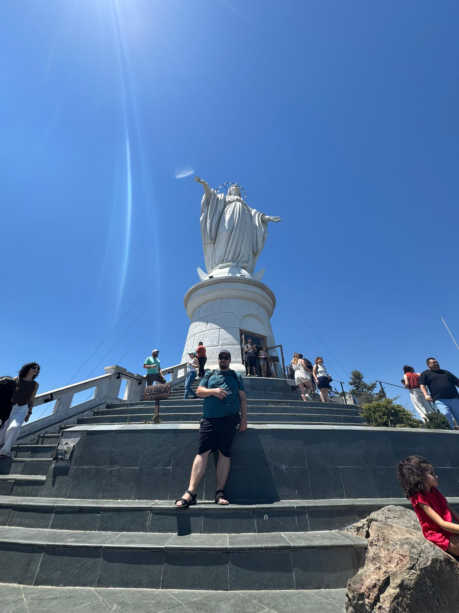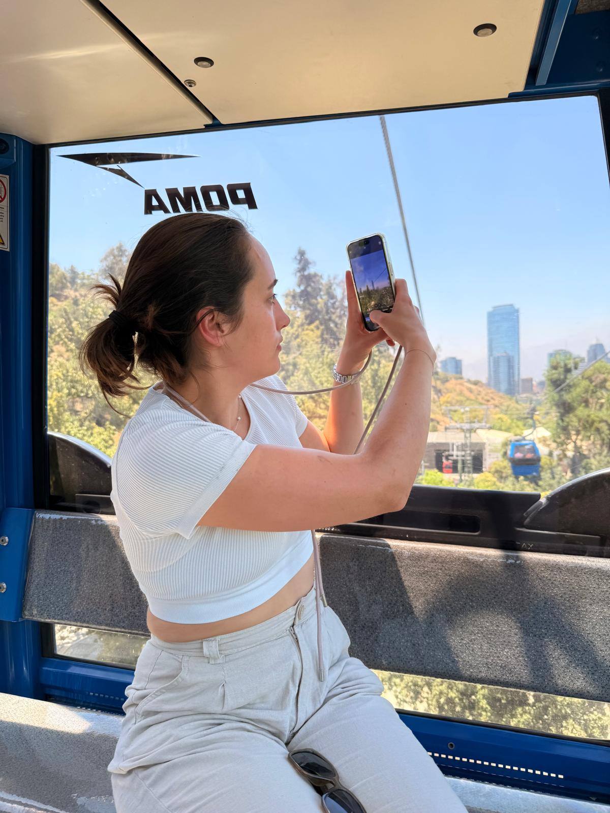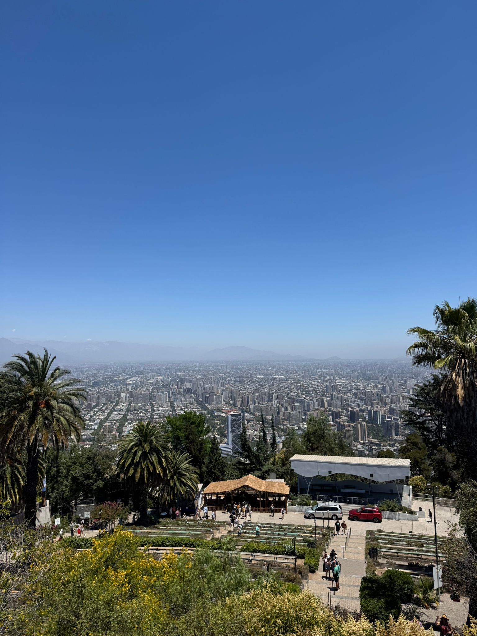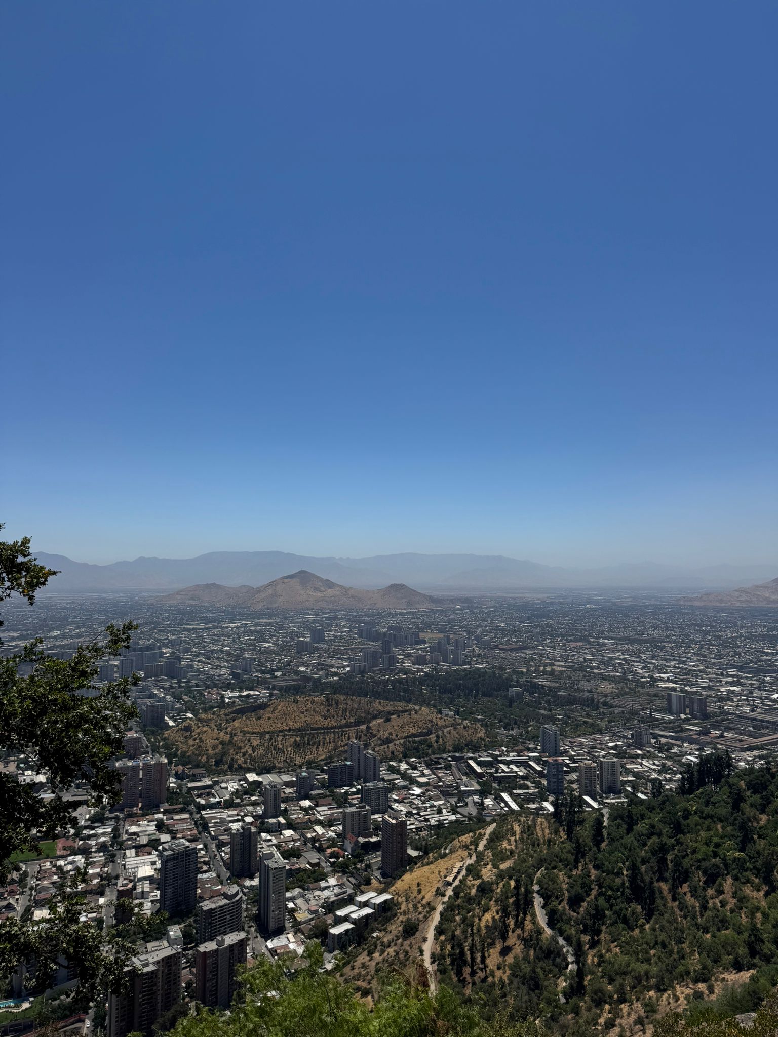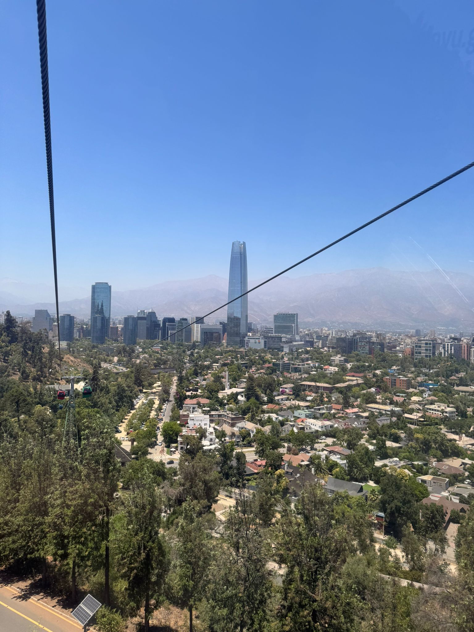 Lanovka nás vyvezla na Cerro San Cristóbal, odkud jsou krásné výhledy na celé město. Teprve shora je opravdu vidět, jak je Santiago obrovské a rozlehlé. Město se téměř nestaví do výšky, dominuje spíš nízká zástavba, a právě proto se rozprostírá do všech směrů až k úpatí And. Pohled shora dobře ukazuje kontrast mezi moderními čtvrtěmi, starší zástavbou a okolními horami.