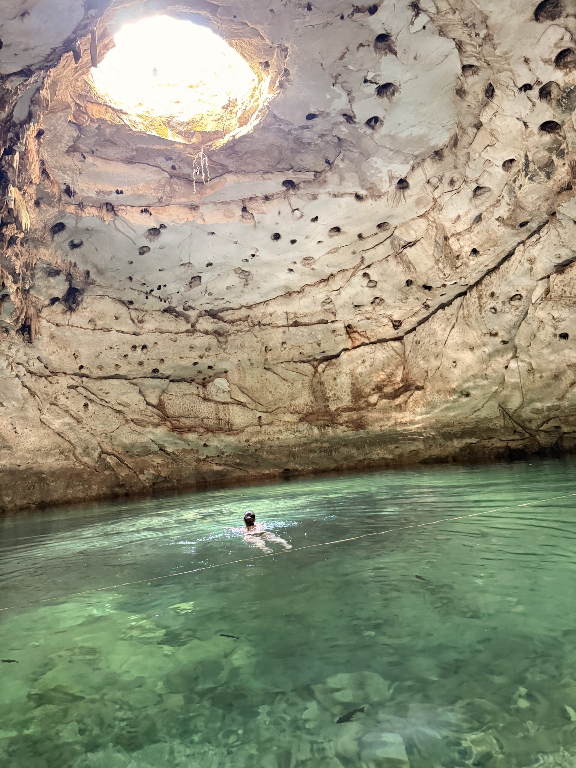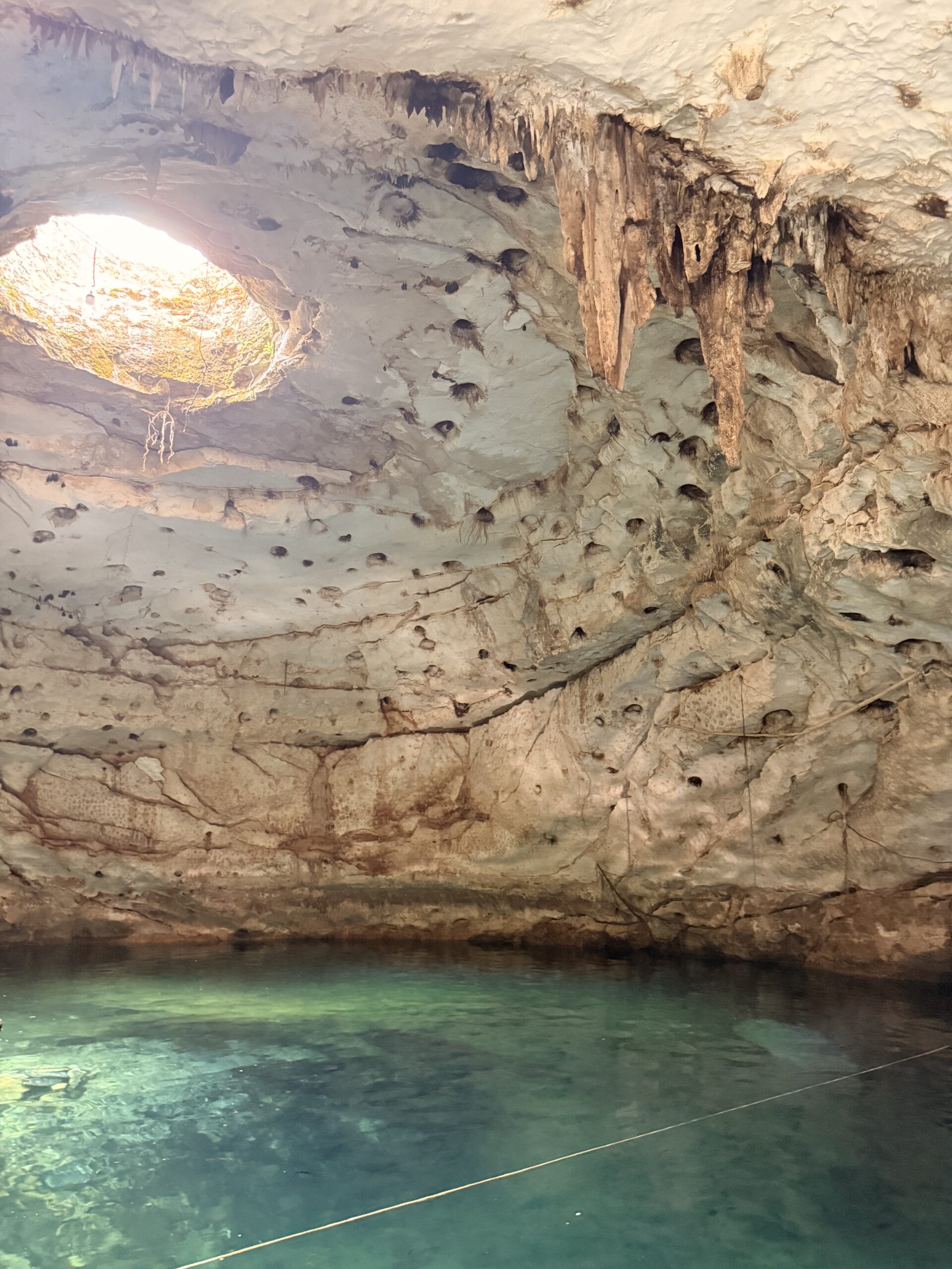 Devátý den jsme začali v klidnějším tempu. Ráno jsme vstali, dali si místní snídani a vyrazili směrem k mayské pyramidě Mayapán. Po příjezdu nás ale čekalo zklamání, areál byl bohužel zavřený, a tak jsme se museli otočit a vydat se zpět. Rozhodli jsme se proto zastavit se po cestě u jednoho z největších přírodních unikátů Yucatánu, u cenot. Konkrétně cenote Hool Kosom ve městečku Homún.