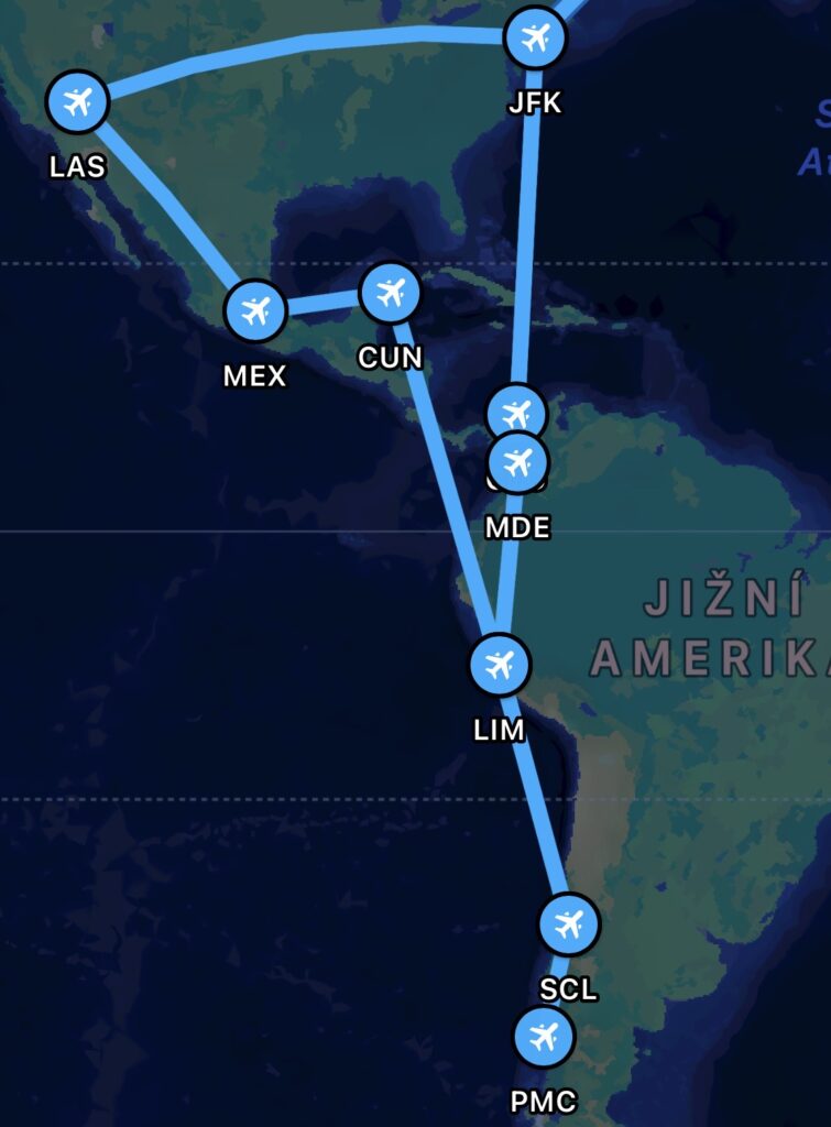 Další články už půjdou do hloubky — New York, Las Vegas, Cancún, Patagonie, Lima, Medellín, Cartagena…